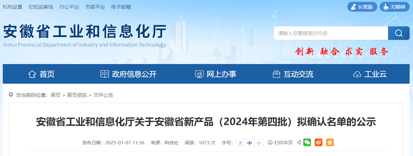 根据《安徽省新产品认定暂行办法》(皖经信科技函[2017]880号),我厅组织开展了安徽省新产品(2025年第一批)确认工作。经 ......