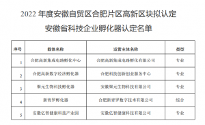 2022 年度安徽自贸区合肥片区高新区块拟认定安徽省科技企业孵化器认定名单