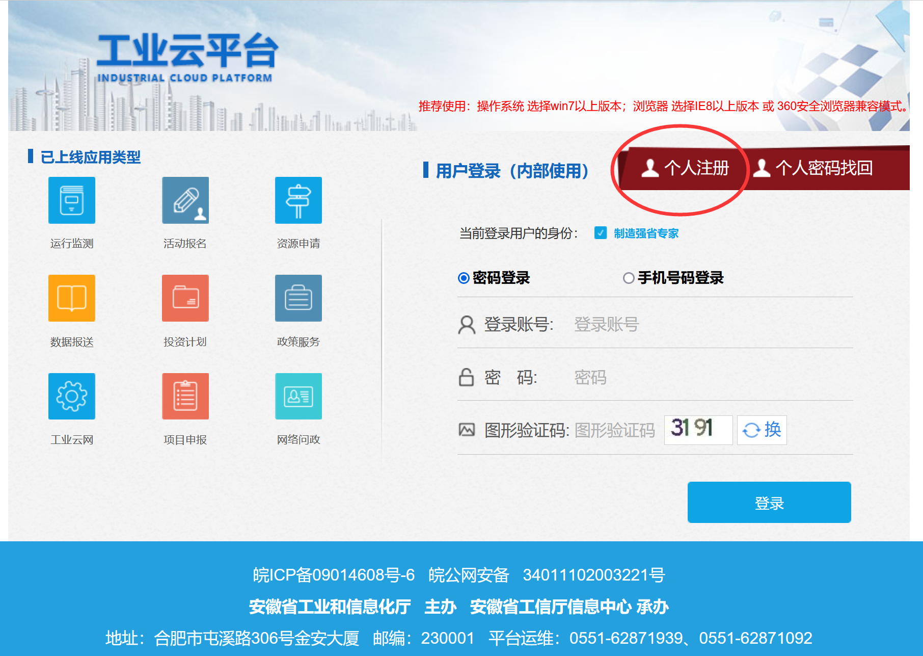 一、登陆安徽省工业和信息化厅网站(https://jx.ah.gov.cn)