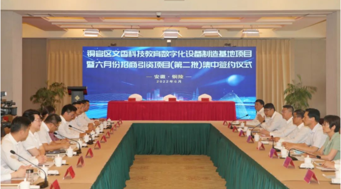 6月18日上午,铜陵市铜官区6月份招商引资项目(第二批)集中签约仪式举行,共有5个项目成功签约,总投资为11.9亿元。铜陵市委常委、宣传部部长潘荣华,副市长杨文萍出席签约仪式。