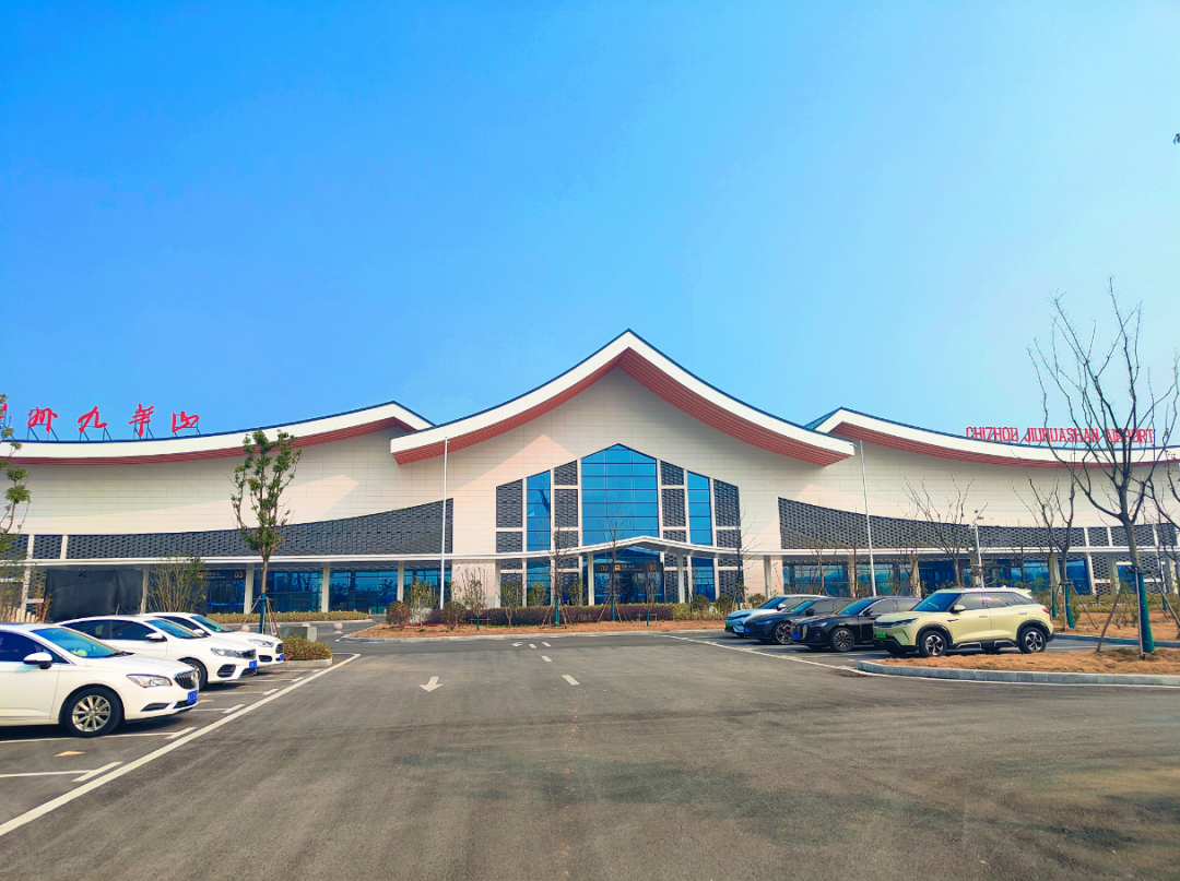 据了解,随着九华山机场每年旅客吞吐量持续增长,老航站楼高峰期保障能力明显不足,且现有跑道已逐渐不能满足主流机型起降需要,为此池州市于2020年5月正式开工建设九华山机场二期改扩建工程。整个二期工程的建设包括:跑道向西北延长400米至2800米;新建一条垂直联络道,新建7个C类站坪机位;新建国内航站楼15000平方米,配套建设助航灯光、空管、气象、供电、给排水、消防等飞行保障设施及辅助生产设施。目前,整个机场二期改扩建工程已全部完工并通过验收。